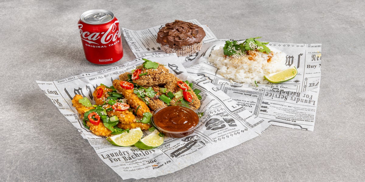 Kaikkien kana-annosten päälle tulee limeä, chiliä, korianteria, seesaminsiemeniä , kevätsipulia, ja mukaan saa valita mieluisan lisukkeen, sekä kastikkeen.