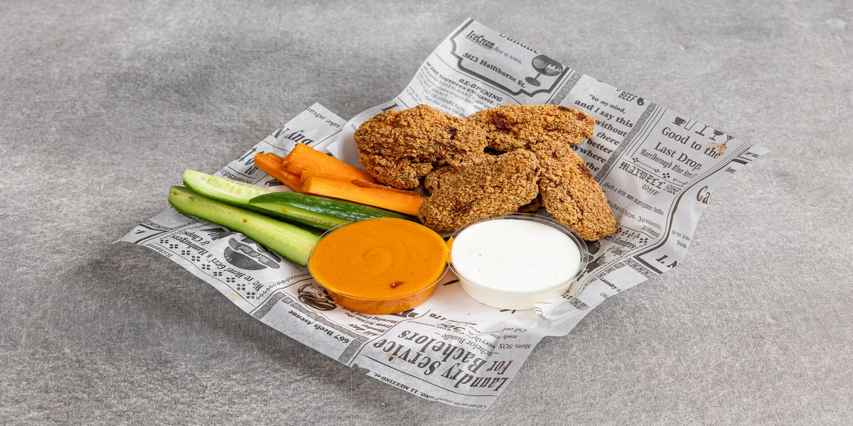 Kaikkiin siipi-, boneless-, sekä vegesiipiannoksiin kuuluu auradippi, porkkana & kurkkutikkuja, sekä valitsemasi siipikastike.